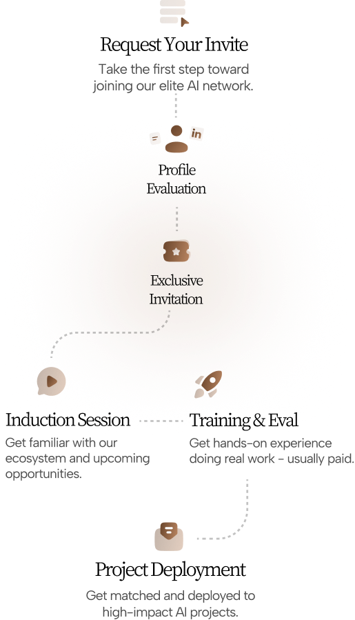 Exclusivity, quality, and impact. You’ll work alongside the top 1% of talent, on high-stakes projects shaping AI worldwide, with continuous learning opportunities and reliable payouts.