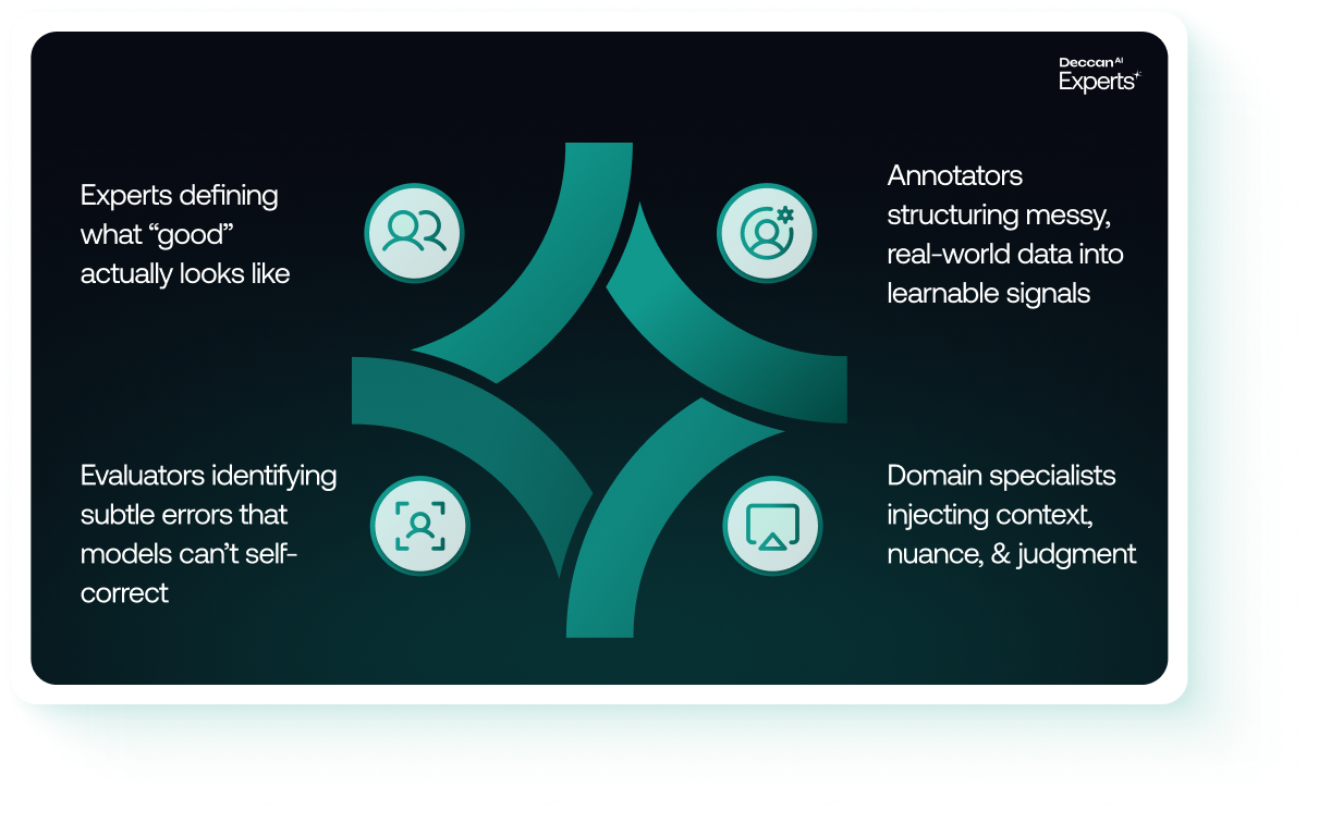 - Domain specialists injecting context, nuance, and judgment
